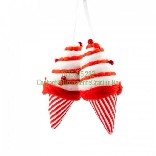 Decoratiune brad in forma de corn cu inghetata, culoare alb cu rosu, dimensiune: 7x7x17 cm, 2 buc/ set, MI-581