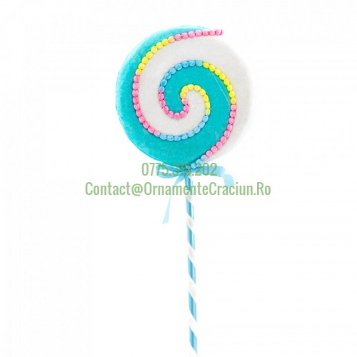 Detalii SKU MI-672Etichete: Decoratiune brad in forma de Lollipop, culoare alb cu albastru, dimensiune: 25x4x71 cm, MI-672