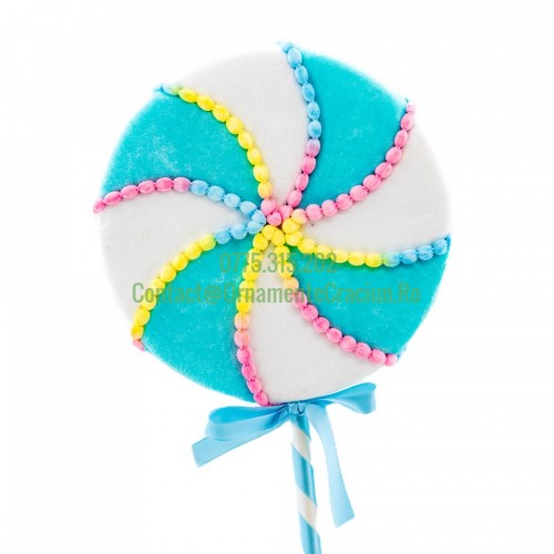 Detalii SKU MI-673Etichete: Decoratiune brad in forma de Lollipop, culoare alb cu albastru, dimensiune: 25x4x71 cm, MI-673