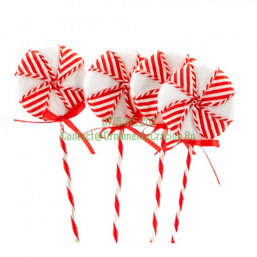 Detalii SKU MI-614Etichete: Decoratiune brad in forma de Lollipop, culoare alb cu rosu, dimensiune: 8.5x1.5x24 cm, 4 buc/set MI-614