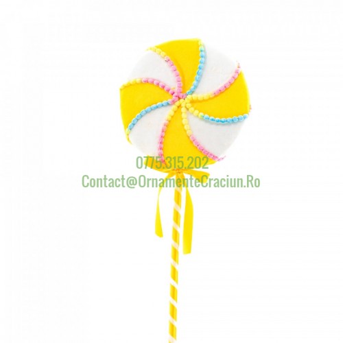 Detalii SKU MI-643Etichete: Decoratiune brad in forma de Lollipop, culoare galben, dimensiune: 34x4x77 cm, MI-643
