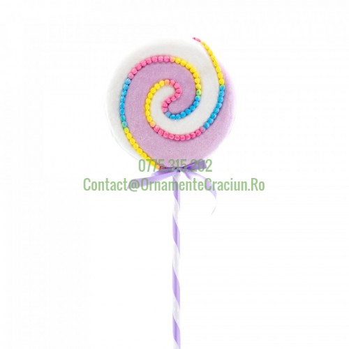 Detalii SKU MI-646Etichete: Decoratiune brad in forma de Lollipop, culoare lila, dimensiune: 19x2x53 cm, MI-646