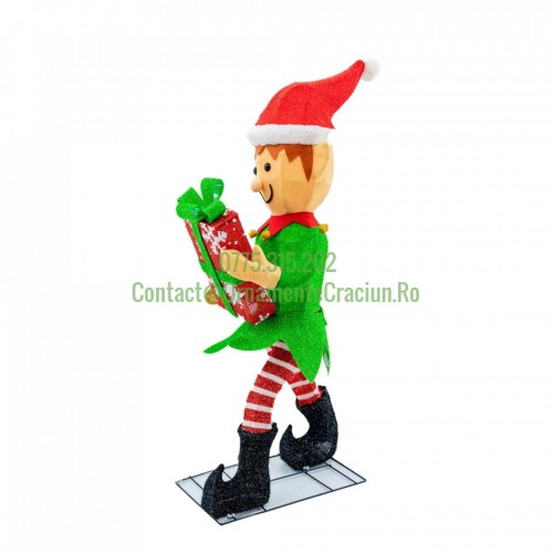 Etichete: Decoratiune Craciun pe cadru de sarma cu material textil si leduri, dimensiune 44x30x107cm, 60 led-uri, lumina calda, cu jocuri de lumini, alimentare la priza, MI-710