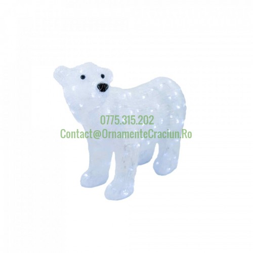 Etichete: Decoratiune de exterior cu lumini, Urs polar, din acril, dimensiune 58x28x42cm, 8 jocuri de lumini, 120 led-uri, lumina rece, cablu de alimentare 3m, protectie IP44, MI-1068