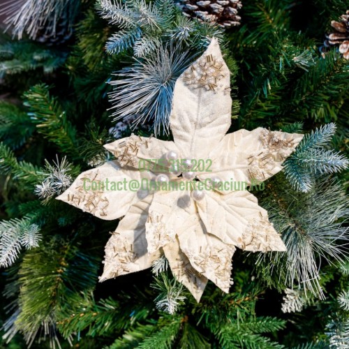 Detalii SKU MI-1075Etichete: Decoratiune pentru brad in forma de floare, culoare alb, dimensiune 29 cm, MI-1075