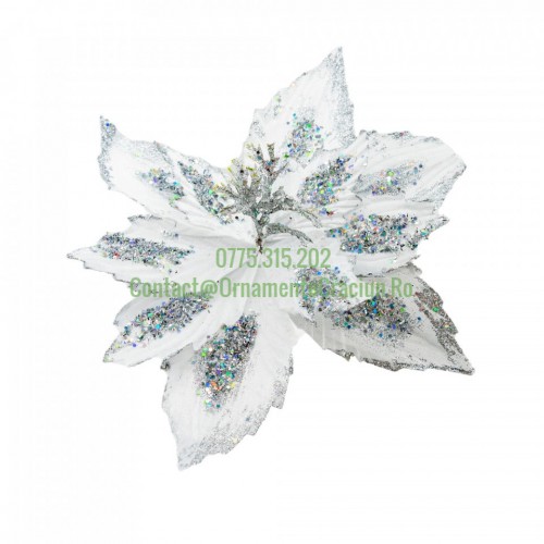 Decoratiune pentru brad in forma de floare, culoare alb, dimensiune 24 cm, MI-1057