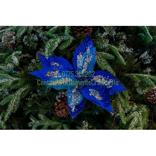Decoratiune pentru brad in forma de floare, culoare albastru, dimensiune 25x 15 cm, HB-509