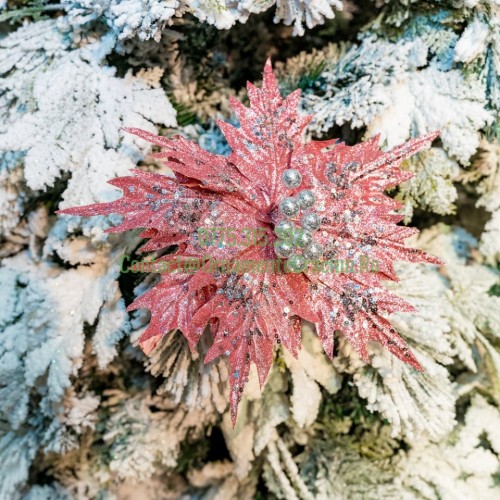 Decoratiune pentru brad in forma de floare, culoare rosu, dimensiune 23 cm, MI-1072