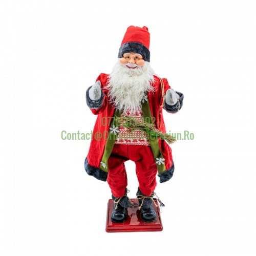 Mos Craciun muzical cu miscare lenta, cuoare rosu, dimensiune 50 cm, cu baterii, HB-1001-50