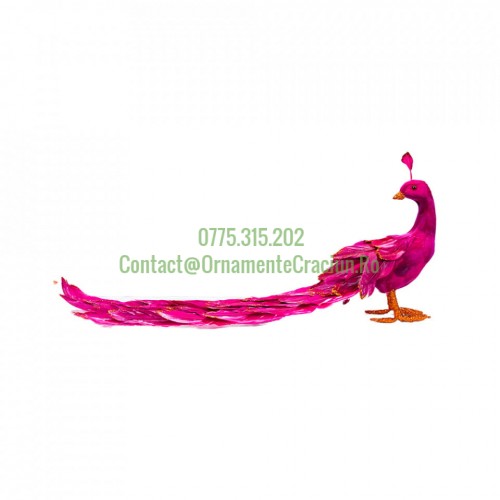 Etichete: Paun decorativ pentru brad, culoare ciclam, dimensiune 20x59x24 cm, HB-2011