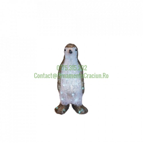Pinguin decoratiune luminoasa de exterior din acril cu 80 led-uri, 8 jocuri de lumini, culoare alb, dimensiune 43 cm, alimentare la priza, MI-1060