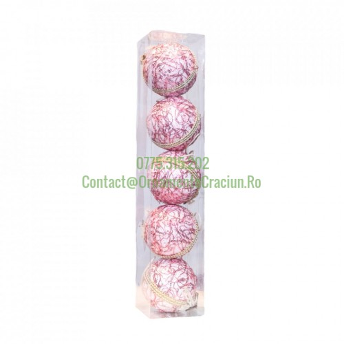 Set 5 globuri din polistiren, culoare roz, diametru 10cm, BL-6020PK